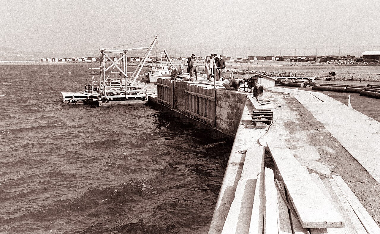 Gradnja pristanišča leta 1962