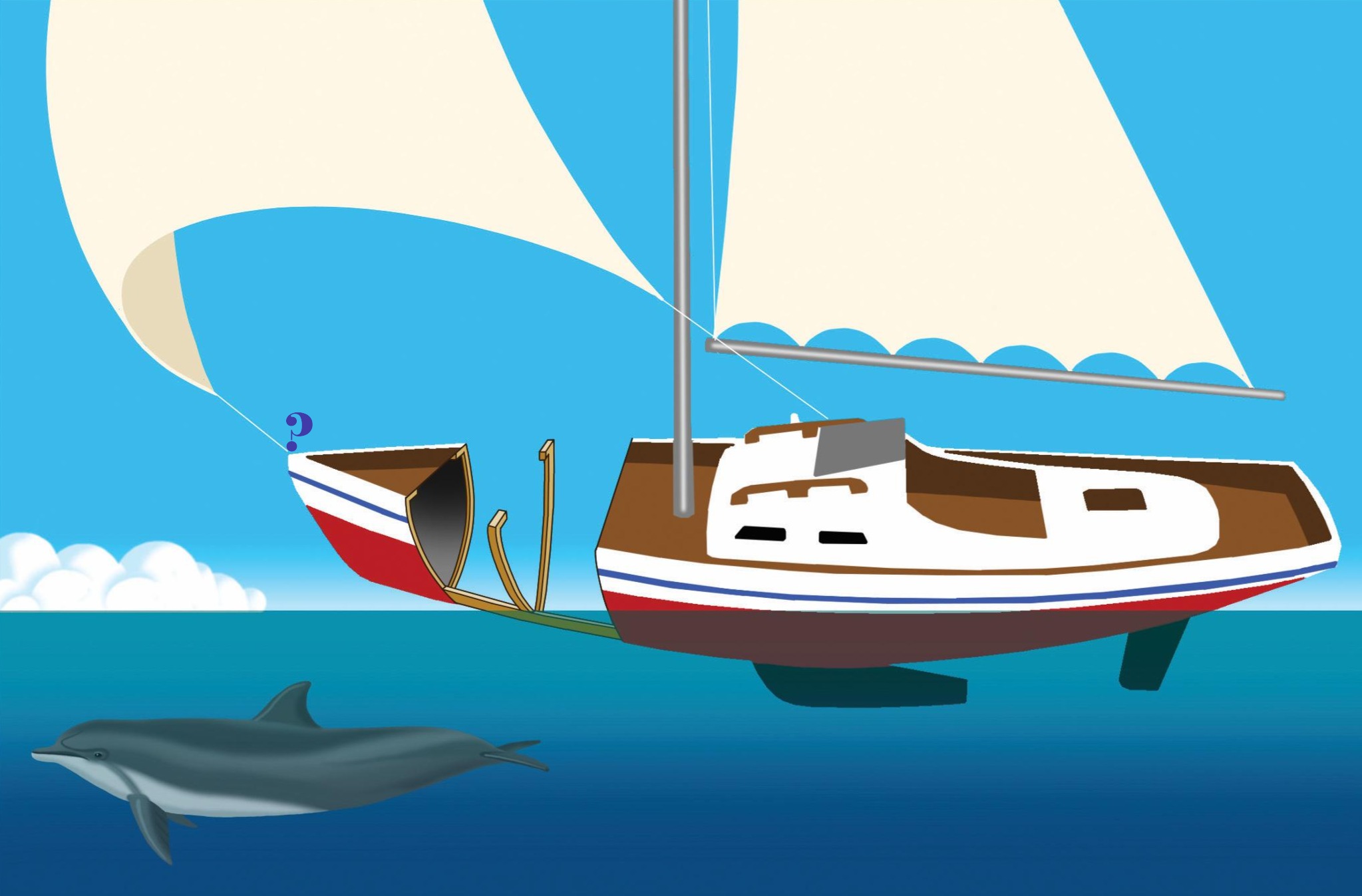 Veš, kako se reče delu jadrnice, kamor smo postavili vprašaj? Če se ti bo zataknilo, najdeš rešitev v tiskani Veseli šoli v februarskem Pilu.