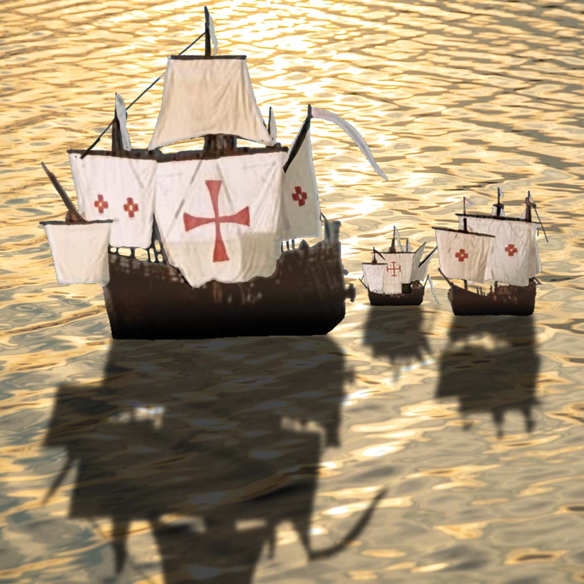//Niña, Pinta in Santa Maria je bilo ime ladjam, s katerimi je Krištof Kolumb 12. oktobra 1492 »odkril Ameriko«. Skupina ladij, ki pluje skupaj, je flota. Santa Maria je bila največja v Kolumbovi floti, čeprav je bila dolga le 36 metrov. Pinta je bila najhitrejša, Niña pa najbolj okretna. Vse tri so bile trgovske jadrnice, stare in ne najprimernejše za drzne podvige. Pot od Španije do Bahamov so preplule v 42 dneh.//