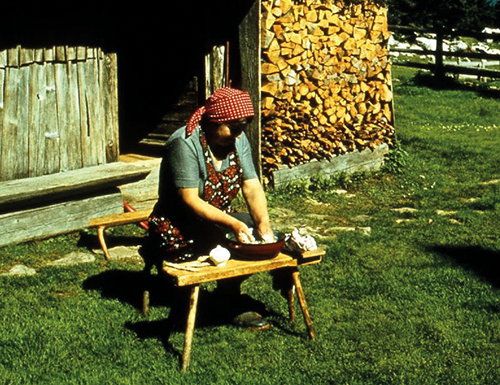 //V Etnografskem muzeju Slovenije hranijo tudi fotografijo majerice, ki izdeluje trnič. Danes ga na planini ne izdeluje nihče več. //